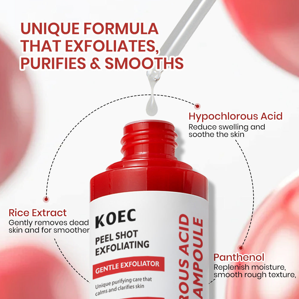 Yes! Our Rice Peel Shot Serum is specifically formulated for all skin types, including sensitive skin. The hypochlorous acid is gentler than traditional chemical exfoliants, and we've included panthenol and niacinamide to soothe and protect. Start with 2-3 times per week and increase frequency as your skin adapts.